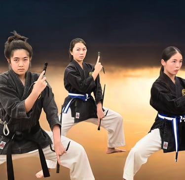 Apart from the traditional Goju Ryu Karate forms, we have some extra Kata in Kenyukan Goju Ryu. They reflect the perfect harmony between Okinawan and Japanese Goju Ryu Karate Do, Okinawa Kobudo and Tsuruken. Without compromising the "core" of the form, we have arranged them according to the student's ranks, and they show and represent a very comprehensive research and study of both Karate systems. We have also incorporated traditional Okinawan weapons Kata into the syllabus, to convert the system into a well rounded Martial Art.